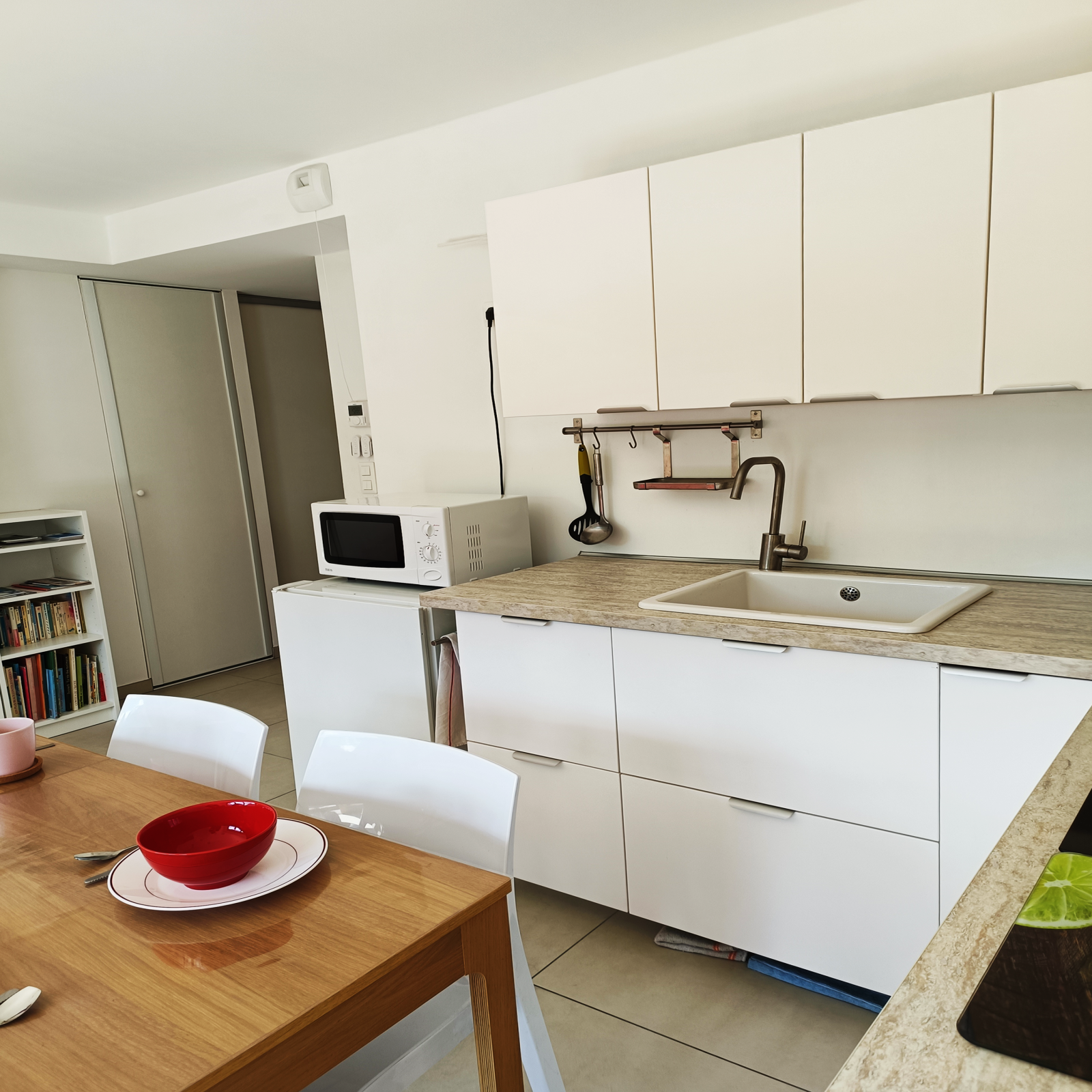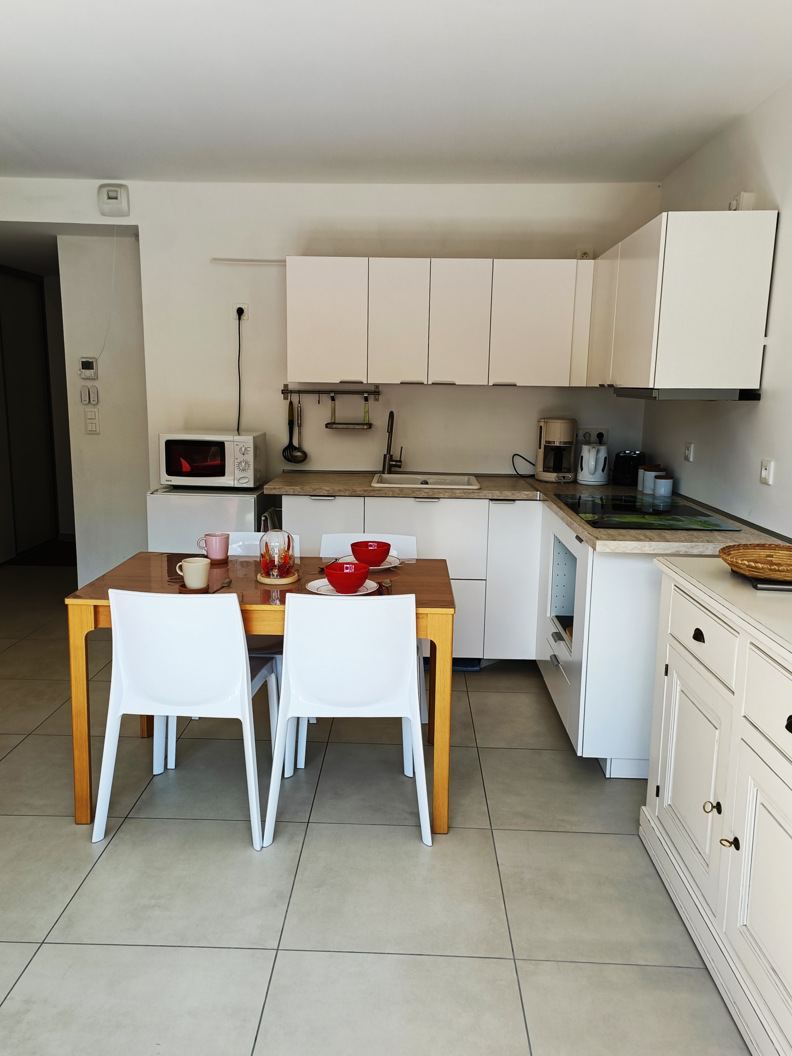 Il se compose d'une entrée avec un grand placard, d'un séjour et d'une cuisine ouverte, semi-équipée se prologeant vers une belle terrasse de 14 m2 à l'exposition recherchée.